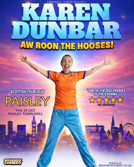 Paisley Town Hall hosts a range of live shows and performances, our annual festivals programme – including the Paisley Book Festival, Paisley Comedy Festival – and our seasonal Winter and Spring/Summer programmes.